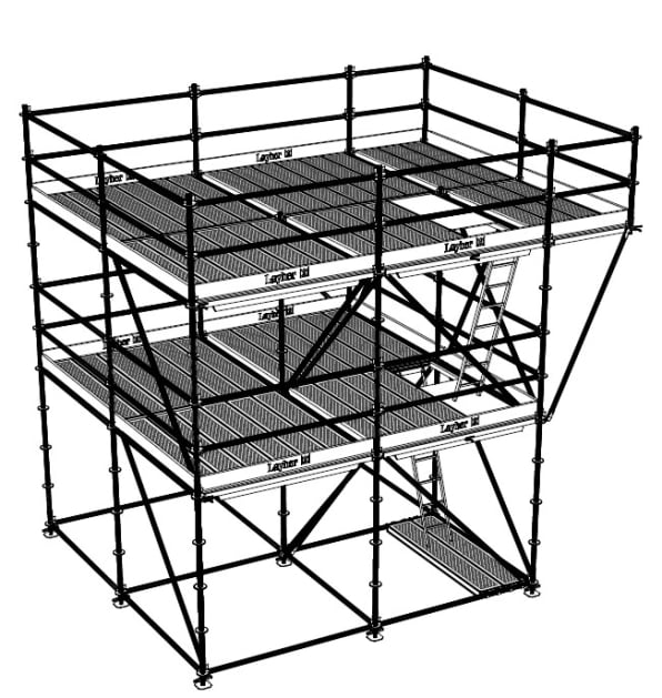 Speciální systémy přizpůsobené náročným provozům v průmyslu – haly, rafinerie, strojní provozy. Lešení lze navrhnout na míru s ohledem na stísněné prostory, vysoké zatížení nebo častou potřebu úprav.